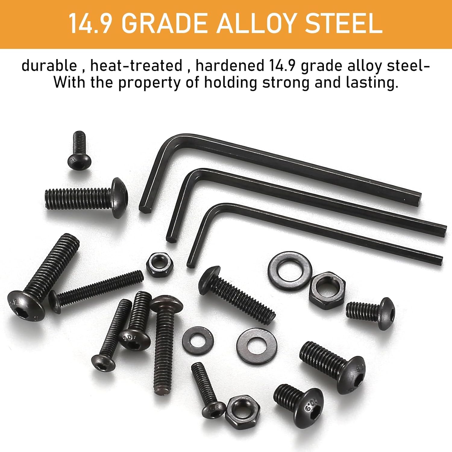 What are the advantages of our hex button head socket screws and nuts and washers? ๐ฉ These hexagon socket head screws bolts and nuts and washers are made of high-quality alloy steel, which is strong, not easy to deform or break, and durable. ๐ฉ All machine screws assortment kits are placed in a storage box, easy to carry, find and use. ๐ฉ The bolts and nuts kit is designed with a round cap with a hexagonal head, which is easy to tighten and use daily. ๐ฉ Suitable for indoor and outdoor, home and work, professionals, maintenance workers, woodwork, construction, furniture, cars and more. Featurese: Material: Alloy Steel Quantity: 1200 Pcs Package Includes: 50 Pcs - 4#*5/16(M3*8) 50 Pcs - 4#*1/2(M3*12) 50 Pcs - 4#*5/8(M3*16) 50 Pcs - 4#*3/4(M3*20) 200 Pcs - 4# Nuts(M3) 200 Pcs - 4# Washers(M3) 30 Pcs - 8#*5/16(M4*8) 30 Pcs - 8#*1/2(M4*12) 30 Pcs - 8#*5/8(M4*16) 30 Pcs - 8#*3/4(M4*20) 120 Pcs - 8# Nuts(M4) 120 Pcs - 8# Washers(M4) 20 Pcs - 10#*5/16(M5*8) 20 Pcs - 10#*1/2(M5*12) 20 Pcs - 10#*5/8(M5*16) 20 Pcs - 10#*3/4(M5*20) 80 Pcs - 10# Nuts(M5) 80 Pcs - 10# Washers(M5) Warranty after sale: If you have any questions about the bolts and nuts and washers kit, please contact us in time, we will solve your questions ASAP. Warm Tips: Color may vary slightly from the online image due to your monitor colour settings, please refer to the actual product, thank you for your understanding.