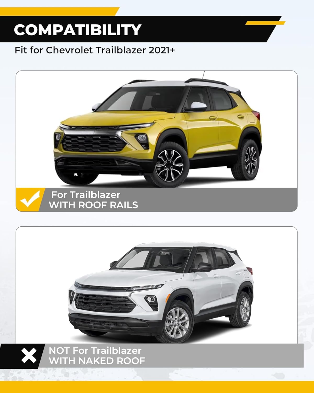 | Compatible with Vehicle Type | Fit for Chevrolet Trailblazer 2021+ with Side Roof Rails |