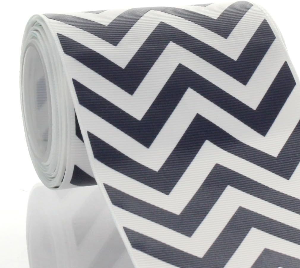 Go big and bold with HairBow Center's 3" navy with white chevron zigzag printed ribbon! Our chevron grosgrain ribbon has a beautiful sheen and the perfect consistency for shaping hair-bows: sturdy, but not too stiff! This ribbon can be used for team bows, sewing, craft projects, packaging and event decor.