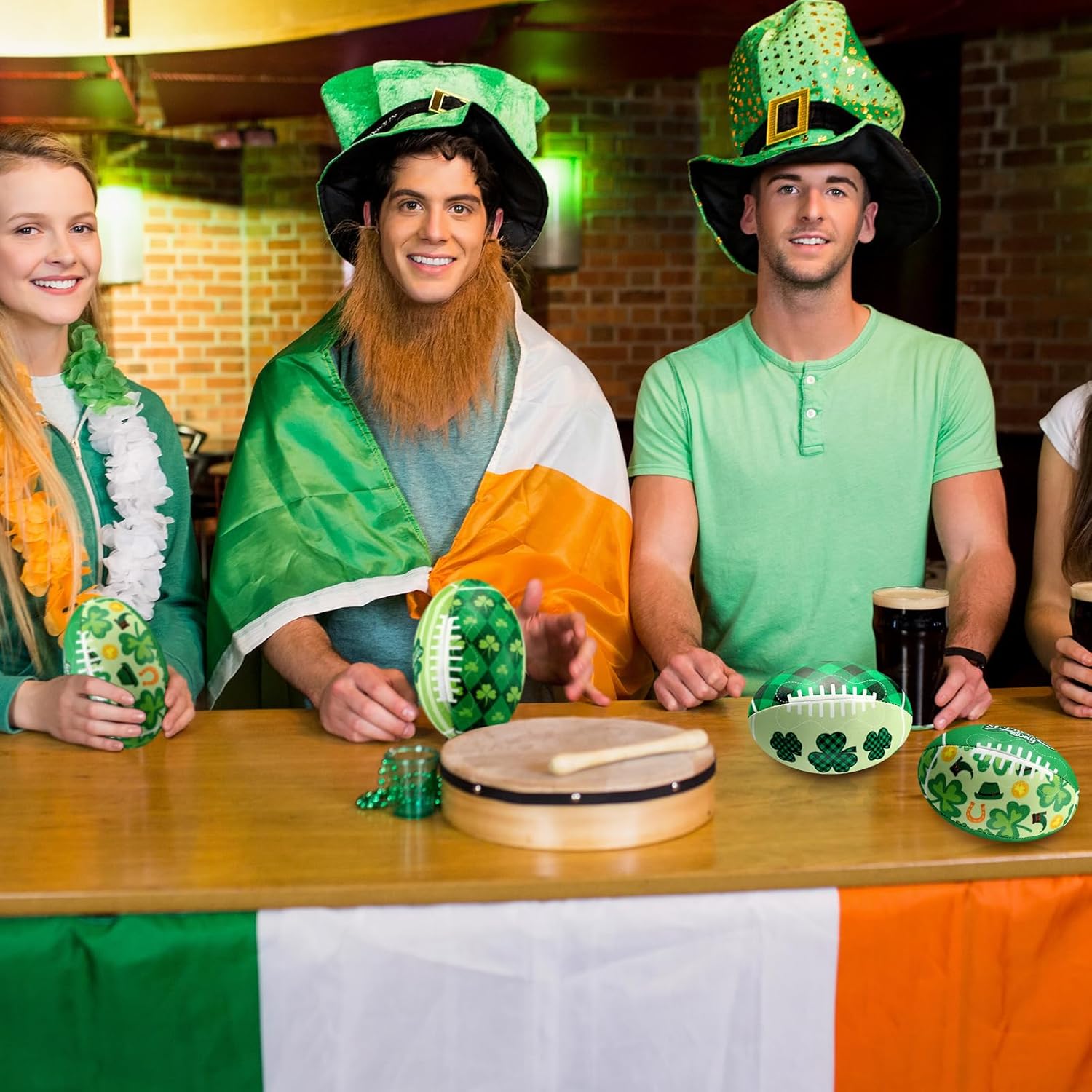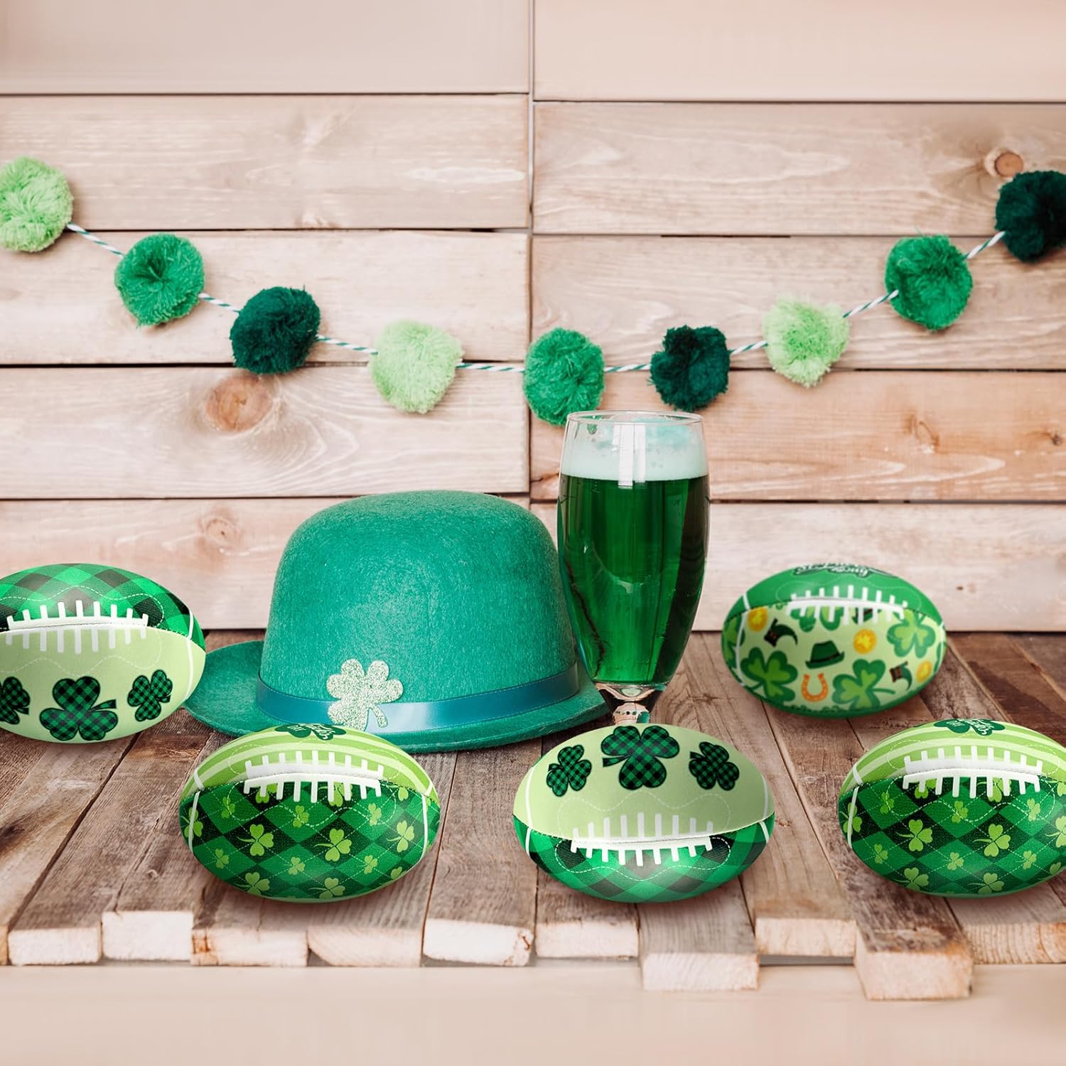 Features: Multi purpose: This foam football is suitable as a party favor for adults and students on the festivals and activities, and also can be applied as beach decorations, bathtub toys and beach toys, bringing them a lot of fun Applicable occasions: Mini foam sports balls are suitable for Irish festival sports theme parties, rugby theme parties, carnivals, holidays, etc. Specifications: Material: leather and PP cotton Color: as the picture shows Size: about 3.4 x 2.2 inches/ 8.5 x 5.5 cm Package includes: 48 x St. Patrick's Day Football Stress Ball Notes: Manual measurement, please allow slight errors on size. The color may exist a slight difference due to different screen displays.