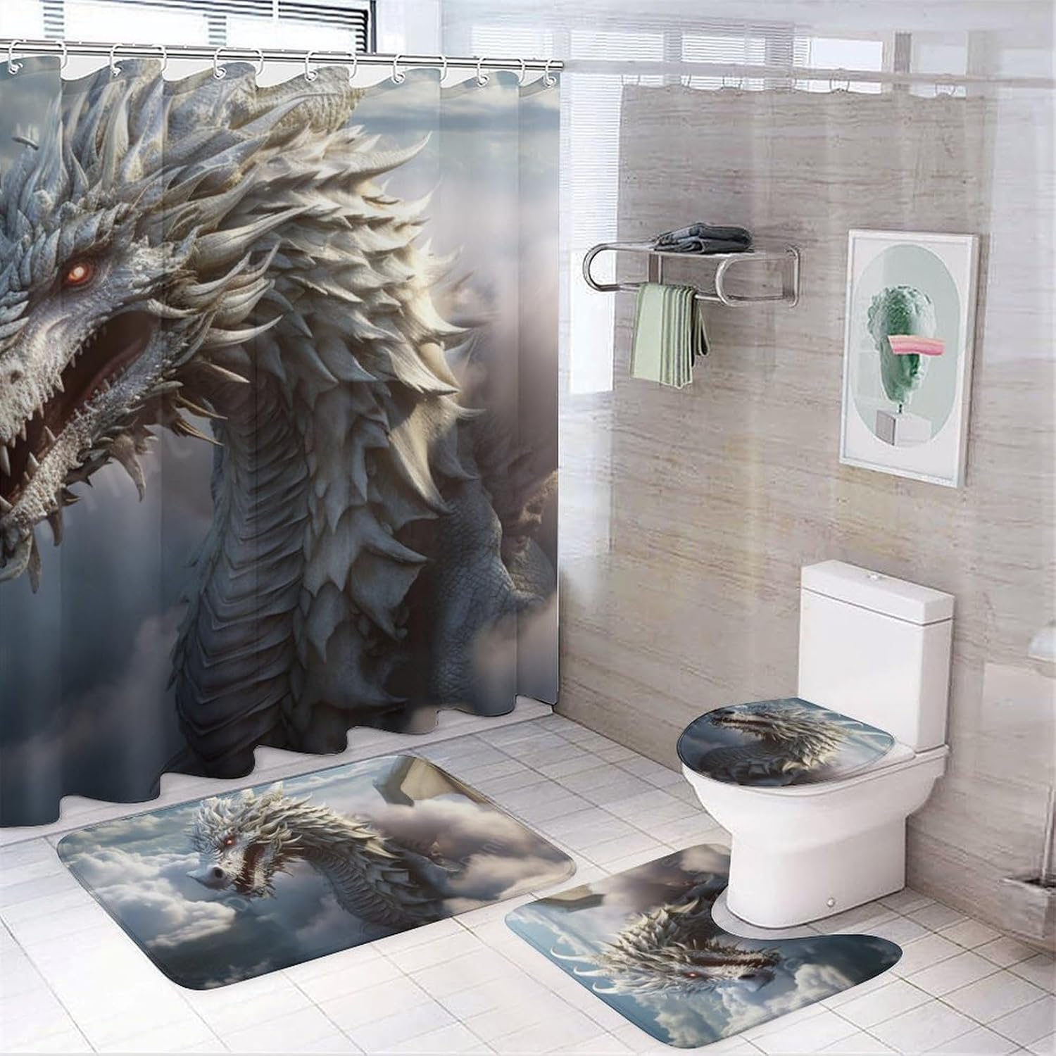Welcome to my store! We hope to decorate each room with a unique style and create beautiful home decor.Accessories construction : Shower curtain (with 12 C-shaped plastic hooks)+Floor mat+U-shaped floor mat+Toilet seat cover cover.EASY TO CLEAN: It's very easy to clean and maintain,easy to store and easy to take care of on a daily basis. WATERPROOF: This shower curtain is made of waterproof Oxford cloth, waterproof performance is good, you can avoid water spraying to other places in the bathroom.Applicable Scenarios : Suitable for home bathroom, guest room, bedroom, living room and other places.Washing instructions: washable, not machine washable.