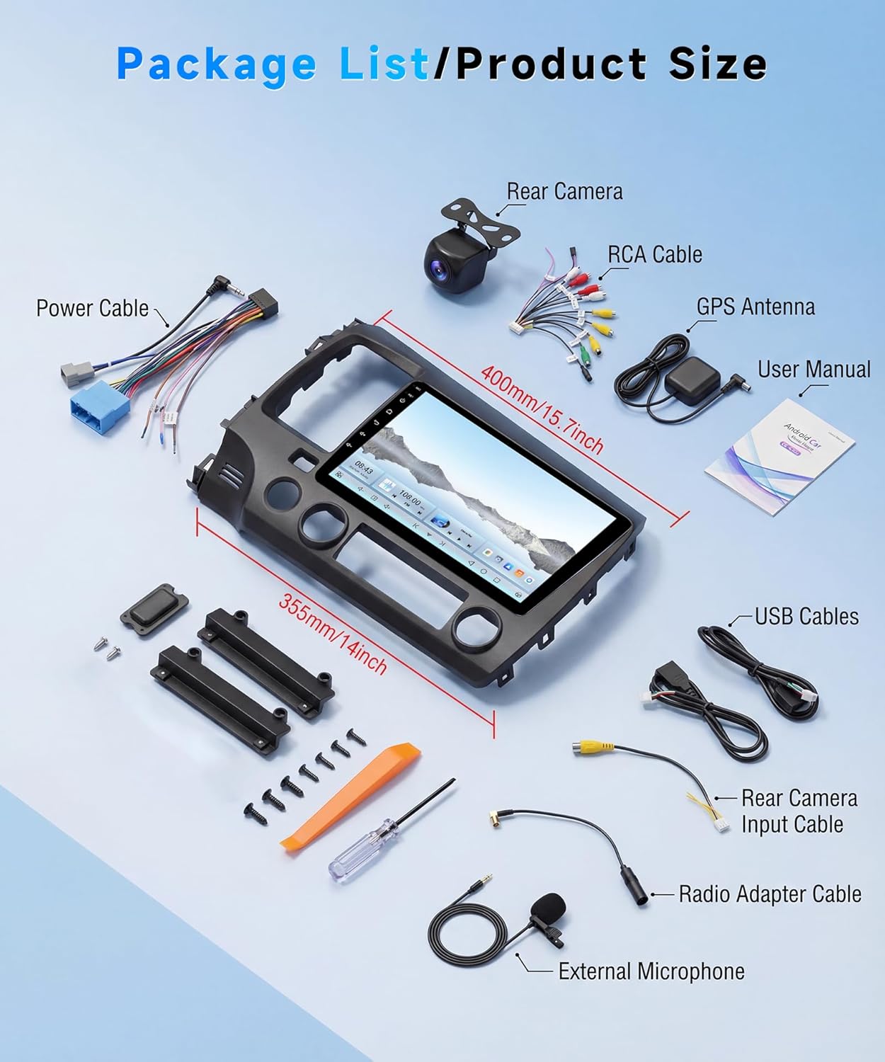 | BuiltIn Media | 1 x For Honda Civic Car Stereo(including frame) 1 x Power Cable 1 x Backup Camera 1 x External MIC 1 x RCA Cable 1 x GPS Antenna 1 x Radio Antenna 2 x USB Cable 1 x Backup Camera Input Cable 1 x Radio Adapter Cable Accessories Installation Tools |