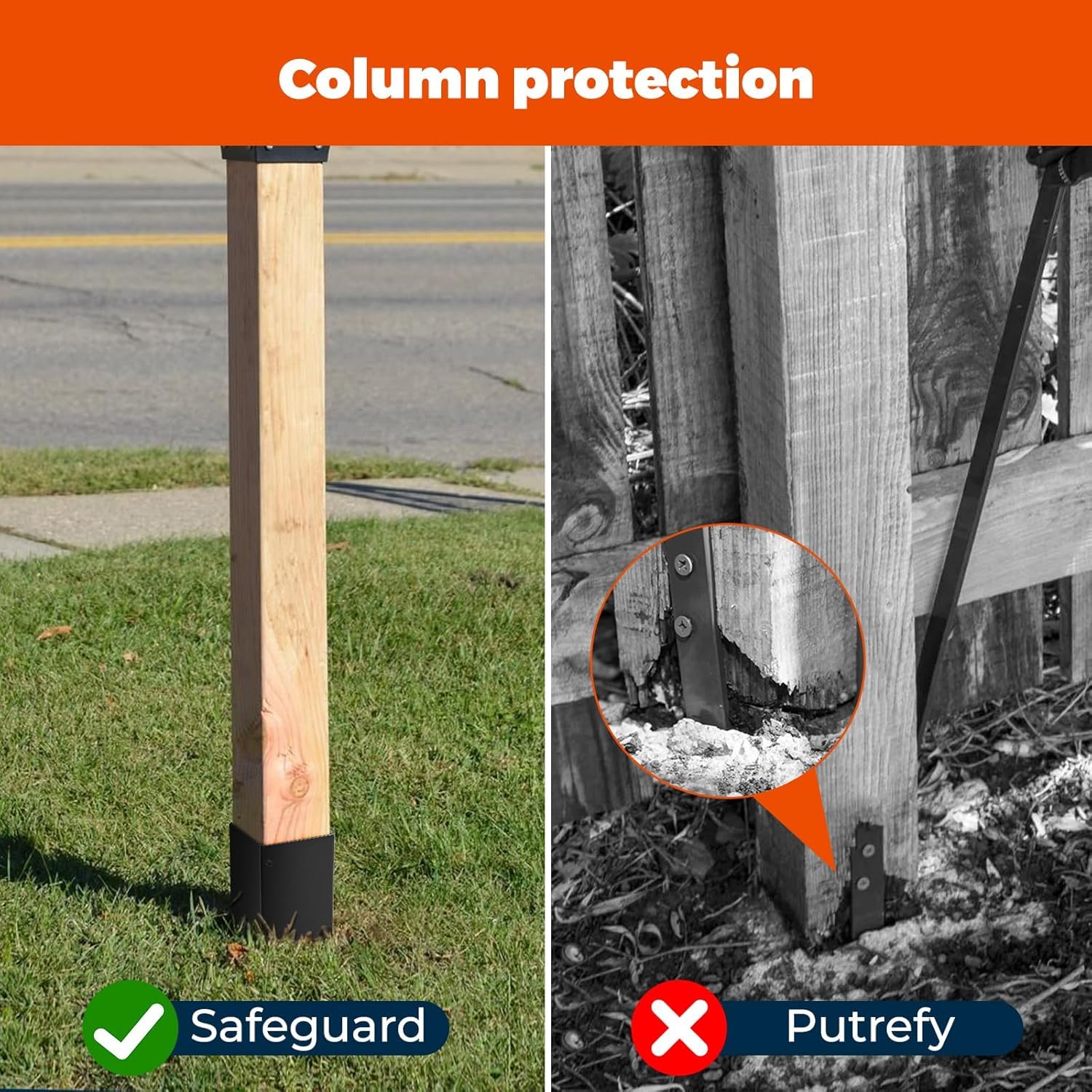 Moxluck Adjustable Post Protector, Stainless Steel Post Sleeve, Fence Post Protection Tool, Protects Wooden Fences and Mailboxes from Rain and Mower Damage,Adjustable Range 3.4”-6” (4 set)