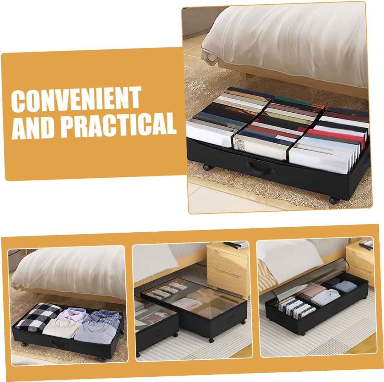 Package List 1 x Under Bed Storage Bag Characteristics -Smooth sliding functionality: easily move and access your stored items with the wheels flat storage bin. -Material:ABS, oxford cloth, iron under bed clothes case -Size:80.00X42.00X16.00cm/31.44X16.51X6.29in underbed storage with wheel -Color:Black underbed storage organizer - This practical storage bag is suitable to be used to store quilts, blankets, clothes, etc under bed storage with window. - The organizer storage box with wheel is made of ABS, oxford cloth, iron that is strong and does not warp, providing effective protection for your clothing underbed storage boxes. - Easy to clean, simply wipe down your storage bags with a damp cloth and let dry under bed clothes organizers. - Window design allows you to see what is in the bag and where it is, easily find what you are looking for with ease underbed storage rack.Goods Descriptionunder-bed storage boxes As the increase of the number of daily necessities, you must nice-looking storage bag .storage for under bed It owns a simple and practical appearance design.storage under bed with wheels The under-bed storage bag can maximize under-bed space.storage container under bed Then, you can choose our under bed storage bin
