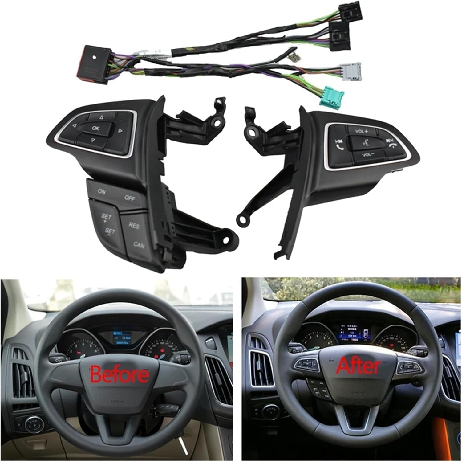 Car Cruise Control Switch Steering Wheel Button Compatible With Focus MK3 2015 2016 2017 Compatible With Kuga Escape 2017 2018 Compatible With Focus MK3 2015 2016 2017 Compatible With Kuga Escape 2017 2018 Please note: the speed limit function is available with LIM. The 6 wires are with shift paddles. Colour: black Material: plastic Package Contents: 1 set x Cruise Control Switch Only the above package content, other products are not included. Note: Light shooting and different displays may cause the color of the item in the picture a little different from the real thing. The measurement allowed error is +/- 1-3cm. Origin : Mainland ChinaWelcome to LiYangMaoYiXiaoKe! We are committed to providing you with the highest quality products and exceptional service.Please feel free to browse our products, you can enjoy a safe and convenient shopping experience.If you have any questions or need assistance, please feel free to contact our customer service team.