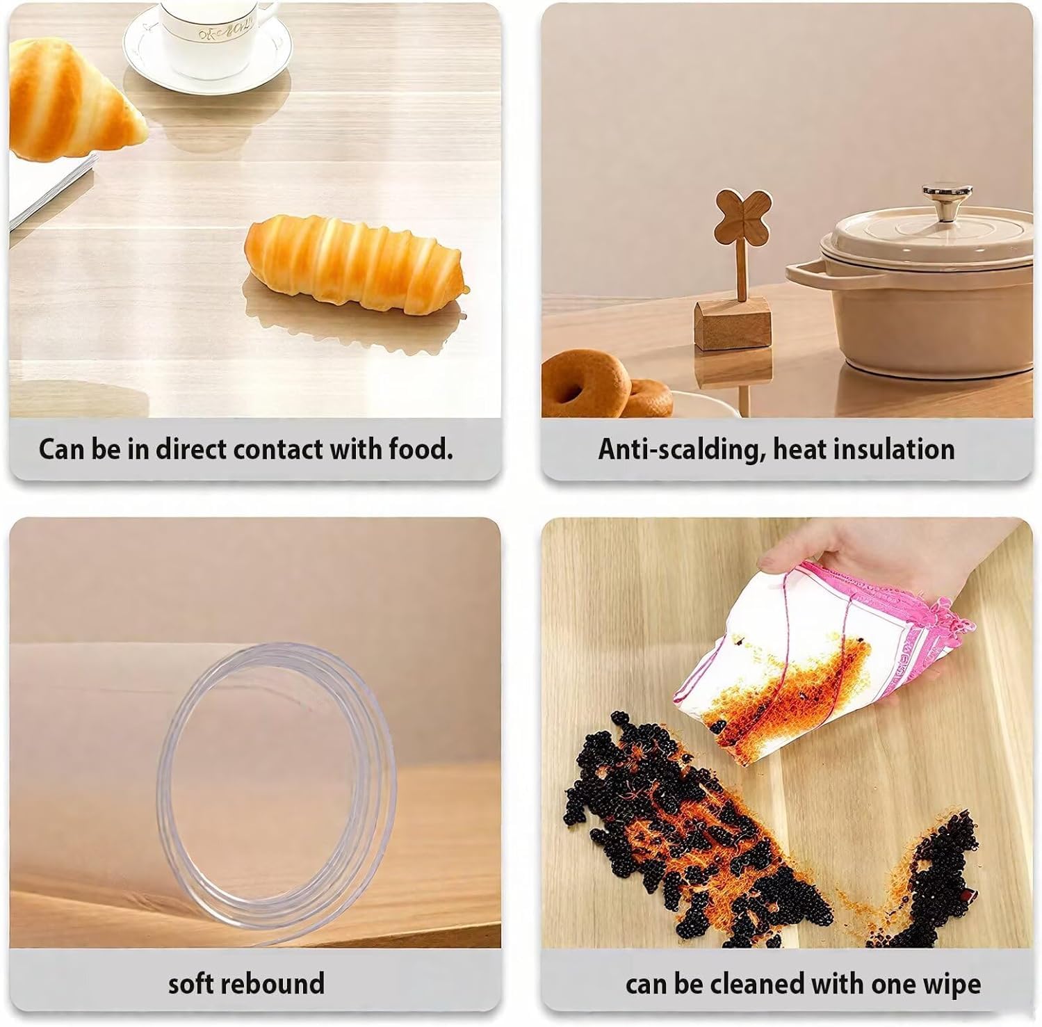PIPRE CRYSAL CLEAR 1MM THICKNESSClear Table Cover Protector are made of premium materials, ideal is suitable for all families to use, enough thick to protect the surface of your table or deskFeature- CUT TO FITIt can be cut to fit. Please mark the exact measurement with a pencil and use a sharp knife or scissors to cut, but please reserve extra 0.3 ~ 0.5 inch in the dimension for margin of shrinking.- HUMANIZED DESIGNRounded corner protection- EASY TO CLEANEasy to clear, using a dish cloth to wipe stains or clean it with water, suitable for protecting your furniture against scratches, scuffs, stains and spillage.- SAFE MATERIAL100% PVC, Safe- MULTIPLE APPLICATIONSGreat for any surface, such as: kitchen, dining room table, office desk, coffee & end table, dresser, vanity table, night stand, countertop, computer desk pad, pet shelter, hard floorMEASURING GUIDEPlease measure your table top measurement (Wide x Length), then choose the right size or order a bigger one to cut to fit.Small techniqueHow to lay it flat on the table when unroll it? For convenient shipping,we have to rolling packed it. Here tips to make table protector flat:1. Heating dryer blow or expose table protector under sunshine in minutes;2. Put heavy items pressing on reverse-roll direction on table protector in days;3. Use accessory tape dopts to fix table protector in place;4. Soak it in hot water for a few minutes and then smooth it out, or use the steam setting on your ironSafety InformationProduct is made of PVC material . Do not put the protector directly on new wooden desktops that have been painted or polished, as the wet paint may stick to the lid.