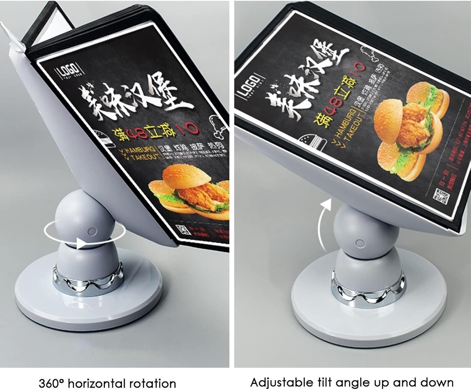 File Organizer for Desk Advantages: Easy to use and read: the panel can easily take out and insert documents when needed, and also has anti-glare and anti-copy functions, which can save working time. Easy-to-assemble structure allows for horizontal 360° and up and down 45° tilt adjustment views at home and office. Heavy weighted base with soft rubber non-slip pad to protect the desktop and place it stably. Cdesktop document holder Specifications: Name: Desktop File Holder/desktop reference organizer/catalog display rack/desktop reference system Material: PVC+Metal Number of pages: 10 pages/20p Weight: 3kg Scenes of use: offices, workshops, exhibition halls, hotel front desks, restaurants, hotels, sample rooms, shops, specialty stores, museums and other places.