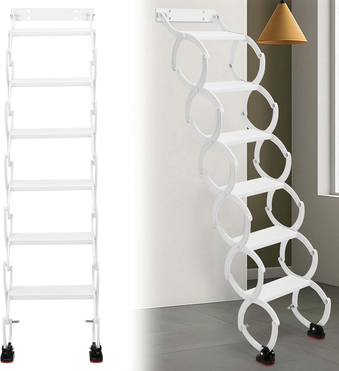 • Suitable for Villas & Small Spaces: Designed specifically for space-constrained environments, this wall-mounted folding ladder provides reliable attic access while occupying minimal space. Its retractable design makes it an essential tool for modern homes.