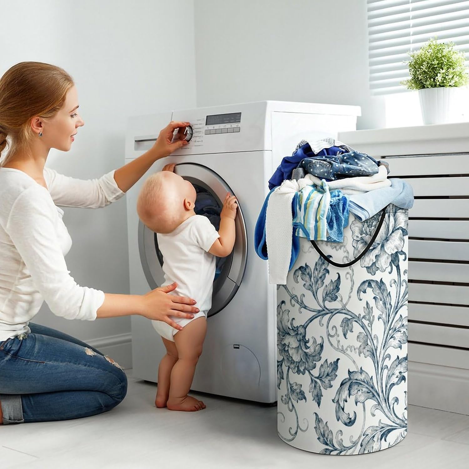 The pattern of the Gray Blue Floral hamper is printed with exquisite patterns, which makes the product more attractive.Chic design allows it to be used in the living room to hold throw blanket, pillows, and reading materials, as well as in the bathroom for towels, or as a laundry hamper.The laundry hamper adopted collapsible design, equipped with handles. It is lightweight and portable for using, storing, and moving conveniently.Gray Blue Floral Clothes hamper is suitable to store dirty clothes washing, place in the room to store toys, and other household goods, keep the house clean and tidy. Perfect laundry hamper for home, office, closet organizer, bedroom, bathroom, college dorm, etc.Gets out of your way when you need it to. This storage basket or laundry hamper is a good gift, which not only meets everyday storage needs but also carries deep care and love, a perfect way to turn thoughtfulness into warmth.