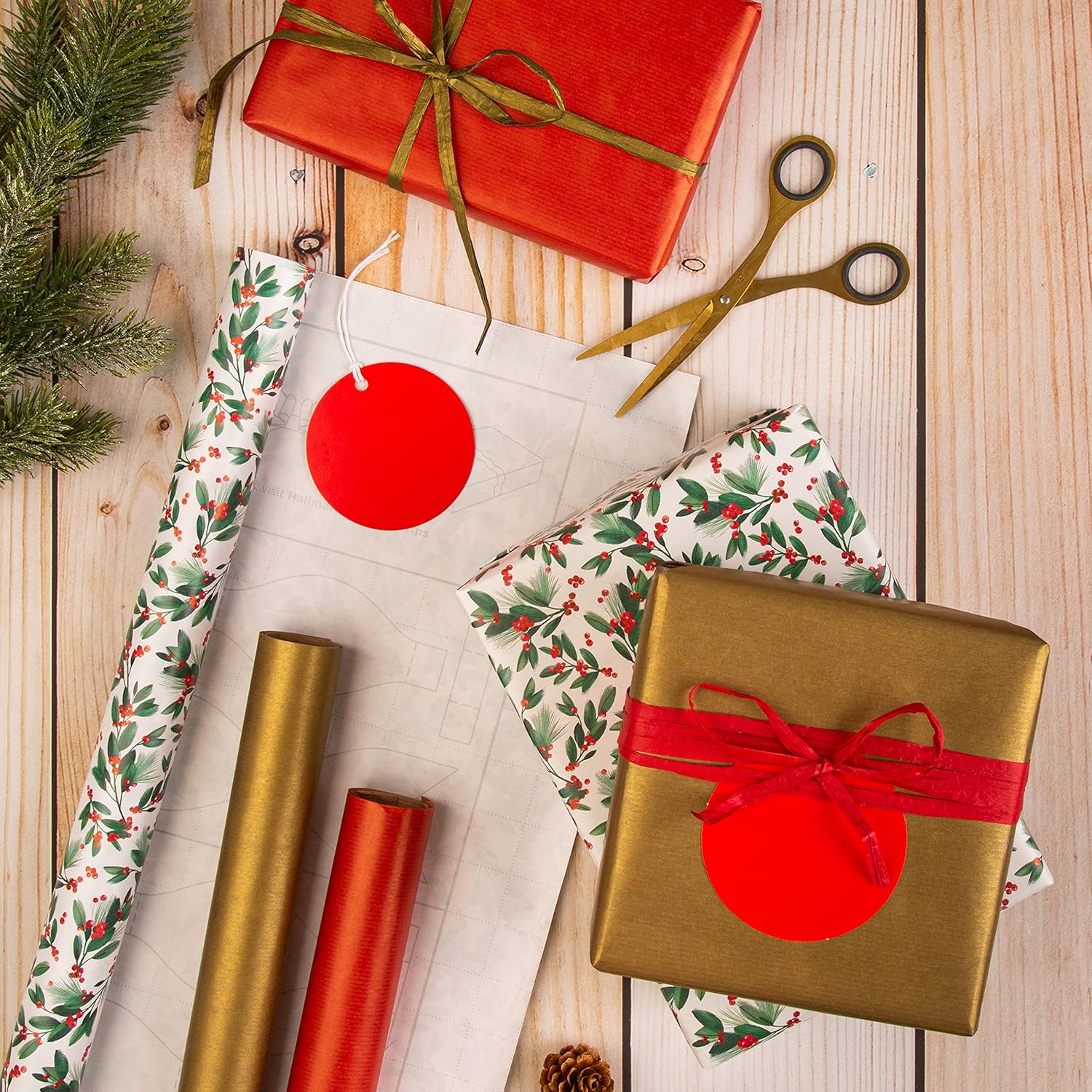 Bring a traditional festive feel to all your Christmas presents, with this gorgeous, luxury gift wrapping compendium from Hallmark. The compendium contains 3 rolls of wrapping paper, 2 rolls of raffia ribbon and 6 plain red, circular gift tags. This product is made using material from well-managed, FSC-certified forests and other controlled sources. Ribbon, tags and paper are all plastic free and fully recyclable, with an additional 12 cm of paper included in place of plastic wrap to protect each roll and keep your wrapping paper perfect.