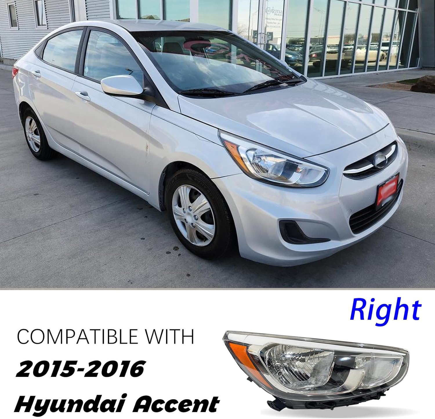 CZDONGY Headlight Assembly Compatible with 2015 2016 2017 Hyundai Accent w/Bulbs Halogen Headlamp