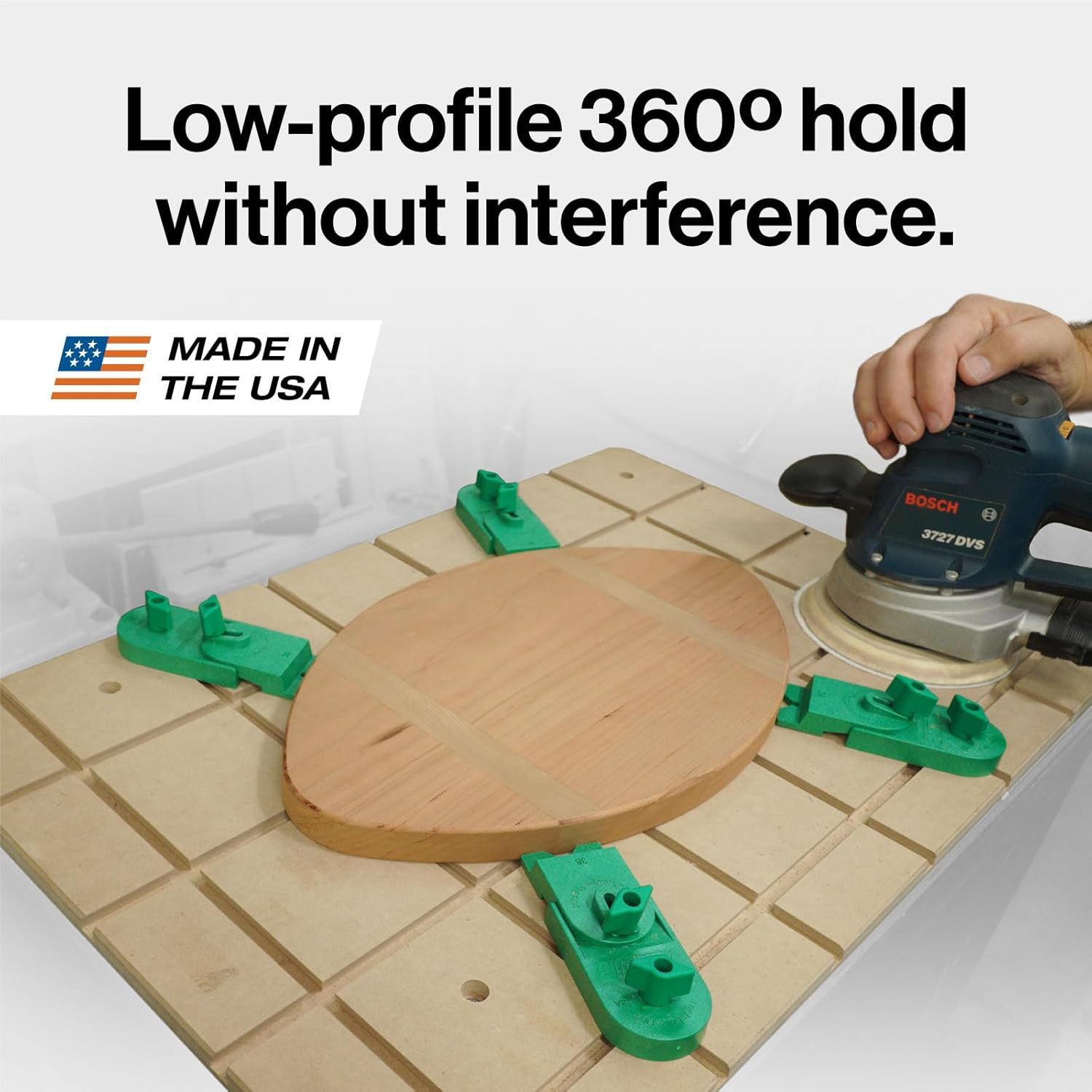 Stop designing your work around your clamps. The MATCHFIT Ramp Clamps (2-Pack) liberate you from the limitations of fixed-position T-tracks and dog-hole grids, giving you unlimited clamping freedom across any surface where you can route a dovetail groove. Conventional workholding forces you to compromise. T-tracks lock you into predetermined positions. Dog holes dictate where you can place your clamps. Both require expensive, permanent installation and still leave you reaching for shims, struggling with material lift, or fighting for tool clearance. These clamps work anywhere you route a 14-degree by 1/2" dovetail groove—on workbenches, sleds, fixtures, jigs, or CNC spoilboards. Slide them into position, tighten, and the innovative wedge ramp mechanism engages. Unlike ordinary clamps that only apply downward pressure, the Ramp Clamp delivers both forward and downward force simultaneously, locking your workpiece flush to the surface with zero lift. Even under aggressive routing or heavy chiseling, your material stays perfectly seated. The low-profile clamp head rotates 360 degrees, letting you position it completely out of your tool path. Work tight corners, route along edges, or plane across the entire surface without repositioning clamps. The head stays low enough that it never interferes with routers, planes, CNC bits, or laser engravers—giving you full access to your workpiece from every angle. These woodworking accessories are ideal for woodworkers, hobbyists, and professionals alike. They are engineered to streamline your workflow, enhance safety, and provide unparalleled control over your materials.
