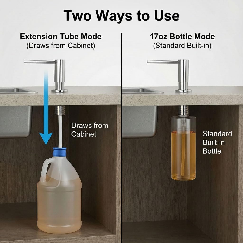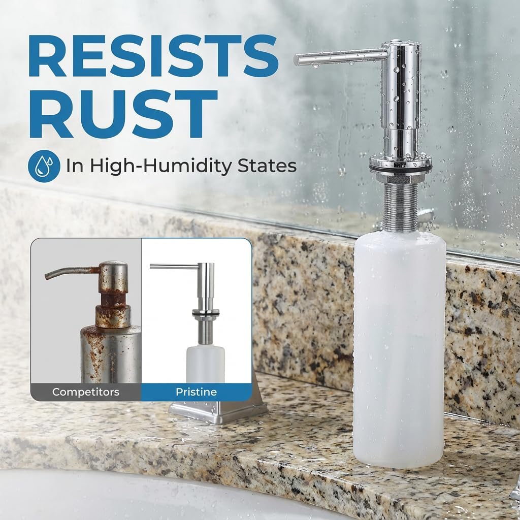 Elevate your sink area with this premium 304 stainless steel soap dispenser, featuring a sleek and modern design that's built to last. The generous 17-ounce refillable bottle ensures you won't need frequent refills, while the extended 120mm pump tube delivers reliable dispensing. What sets this dispenser apart is its exceptional all-weather durability - it's waterproof, freeze-proof, and specifically engineered to resist rust and corrosion, even in high-humidity environments. The robust metal construction maintains its pristine appearance over time, unlike standard dispensers that can deteriorate quickly. Perfect for kitchens and bathrooms, this dispenser combines practical functionality with sophisticated style. The precision-engineered pump mechanism ensures smooth, consistent dispensing, while the solid stainless steel construction provides stable mounting and long-term reliability. Easy to refill and maintain, this dispenser adds both convenience and elegance to any sink setup.