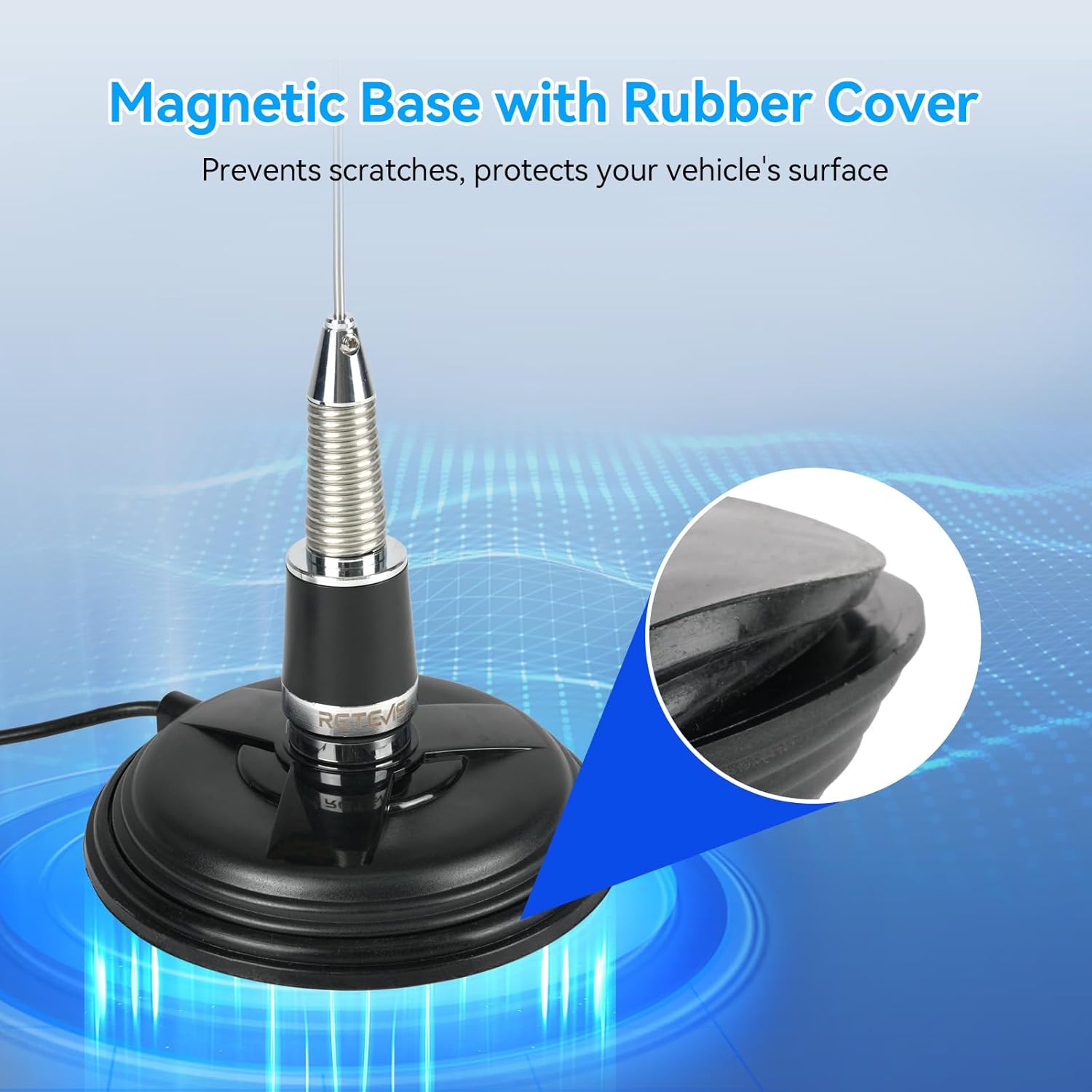Retevis MR600 Silver Black Car Antenna [GMRS Version/Spring Base/NMO Interface] Specification Antenna Height; 810 ± 3 mm Bottom Diameter; Ø39.3±0.2 mmAntenna Weight; 250g Antenna Interface; NMO Color Set; Silver + Black Frequency (Center Frequency of Two Versions); GMRS (462-467MHz); Standing Wave RA25 GMRS mobile two-way radio has 22 GMRS channels and 8 base station channels, and it can set separate CTCSS/DCS/DTMF and other signaling for each channel. The 1.44-inch TFT display can quickly read the current setting content, and the screen has LCD brightness control, which can be freely selected. It has a handheld microphone for easy operation, and the PPT button can connect with others at any time. The VOX function frees your hands and makes it easy to communicate when you are busy. With a wide range of farms and ranches, how to communicate quickly and efficiently is essential. When using it on large combine harvesters, grain carts or trucks, you can connect the power supply in the car without worrying about power problems and use it with confidence. The RA25 GMRS mobile radio can be compatible with other devices, set the same channel to quickly communicate problems encountered, complete work tasks collaboratively, and solve problems efficiently. More features:FM;Emergency alarm;TOT;BCL;Keypad lock;High-quality radiator. What's in the box:RA25 GMRS Mobile radio;Microphone;Microphone Hanger;2 x Adjusting screws;4 x Pads;4 x Screws;1 x Fuse;1 x Mobile Bracket;2 x non-slip mat;1 x User manual.