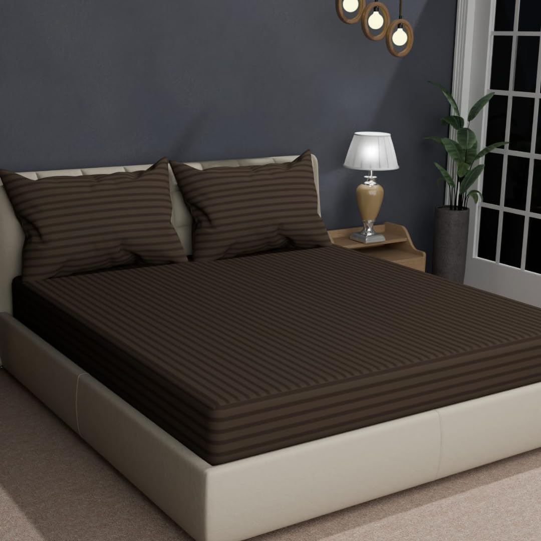 Transform your bedroom into a luxurious retreat with this premium cotton bedsheet set from SMILE SUN. Crafted from 100% cotton with a 200 thread count, this bedding collection offers the perfect balance of softness, breathability, and durability for a comfortable night's sleep. The set includes everything you need to refresh your bedroom: a fitted sheet, a flat sheet, and coordinating pillow covers in a sophisticated striped pattern. The rich chocolate brown color with elegant stripes adds a touch of timeless style to any bedroom decor. Available in multiple configurations to suit your needs - choose the twin size set that includes one 20x30 inch pillow cover, or opt for the queen or double size sets that come with two pillow covers for complete bed coverage. The natural cotton fabric is gentle on skin and becomes softer with each wash, while the classic striped design maintains its appeal season after season. This versatile bedding set works beautifully in master bedrooms, guest rooms, or dorm rooms, providing hotel-quality comfort in your own home.