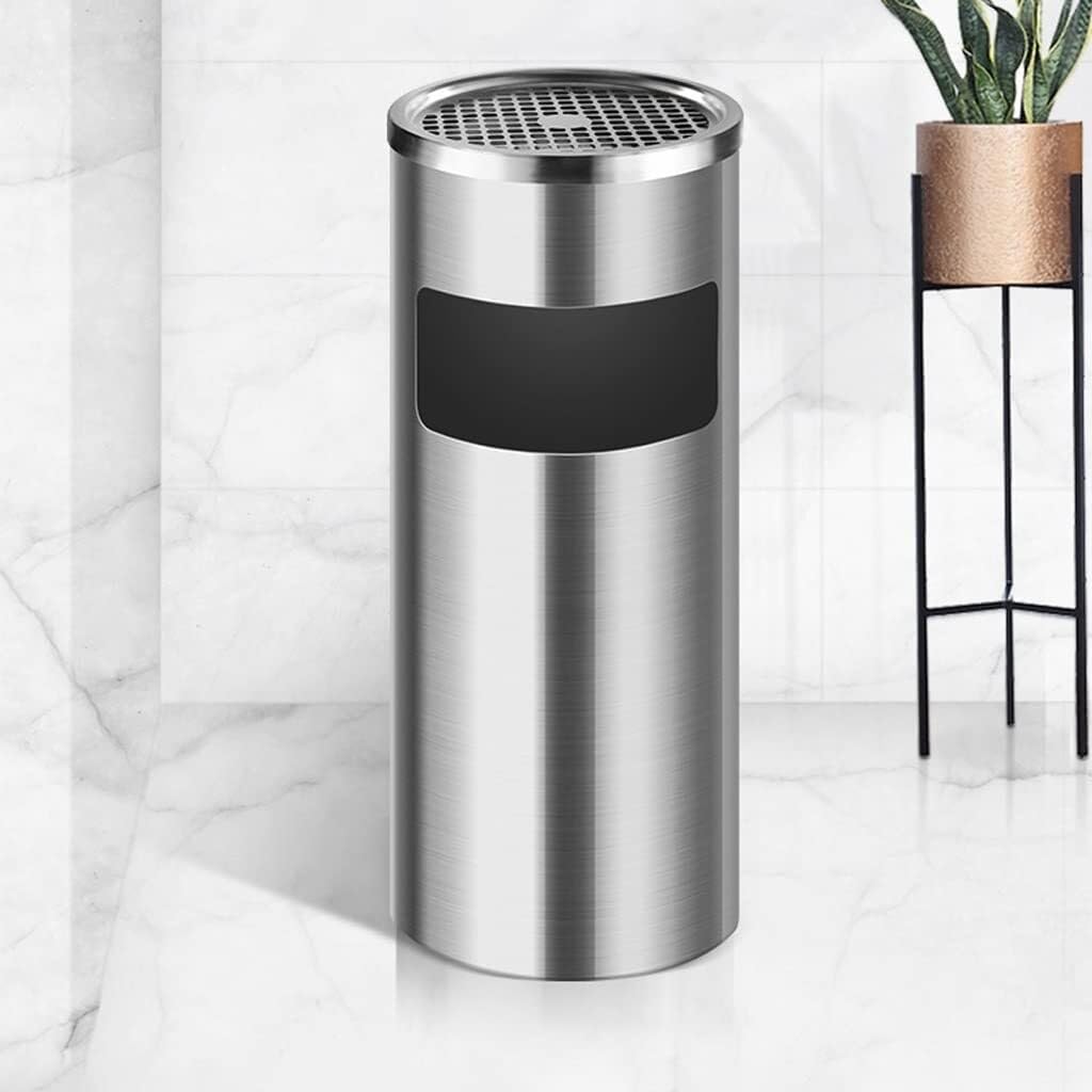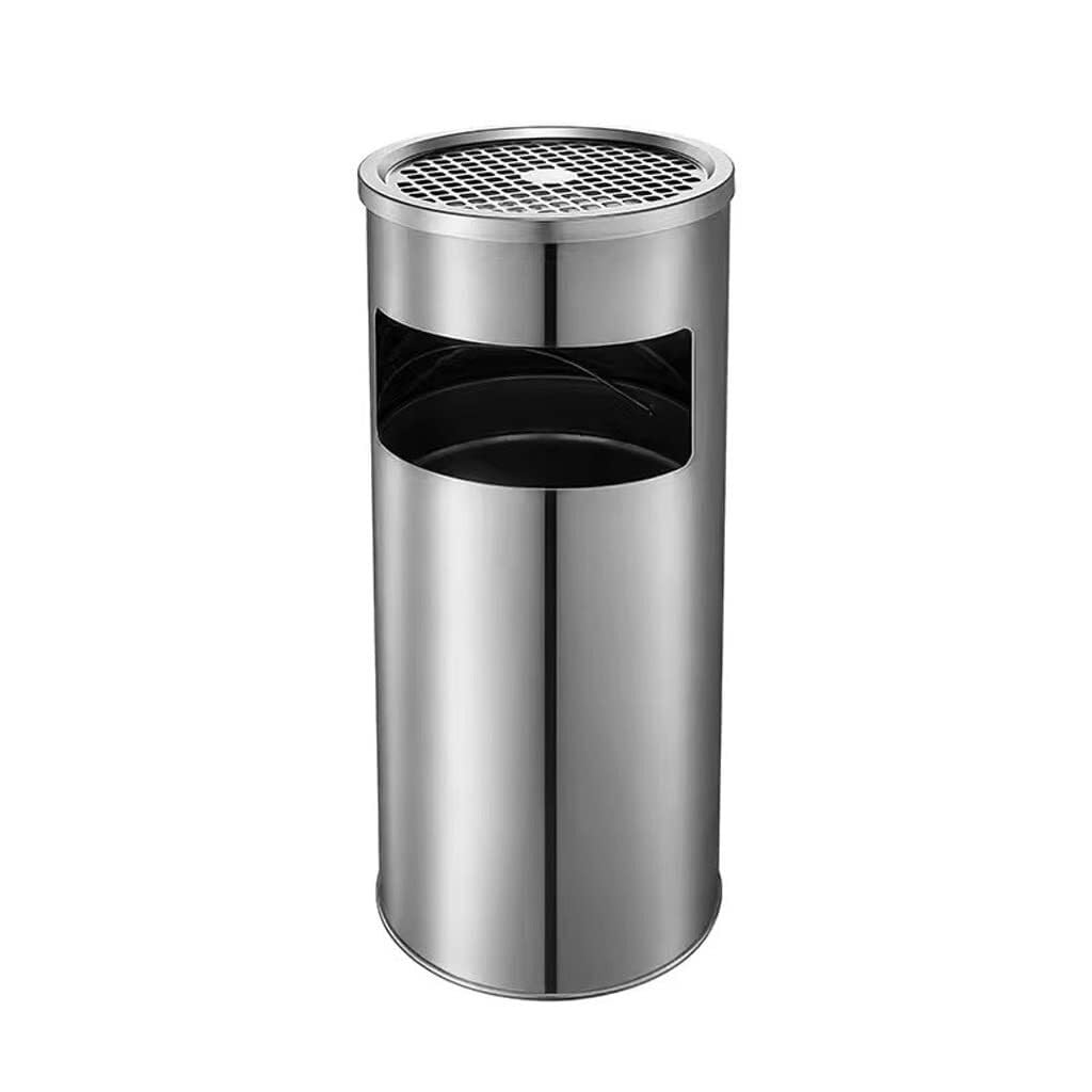 This stainless steel ashtray trash can is designed for both functionality and style, offering a perfect solution for waste disposal in both indoor and outdoor environments. Crafted from stainless steel, it resists rust and corrosion, ensuring a long lifespan even in high-traffic areas.The innovative double barrel design includes an inner bucket that hides trash bags, giving the trash can a sleek and clean look. The inner bucket is equipped with a handle, making it easy to remove and clean when needed. The mesh soot cover allows ash and soot to be easily swept into the trash, making it ideal for smoking areas.The trash can also features a side discharge port that is wide and enlarged to facilitate easy garbage disposal. Whether you’re placing it in a hotel lobby, corridor, office, park, or kitchen, this ashtray trash can is versatile enough for all settings. Keep your spaces clean and tidy with this stylish and trash solution.