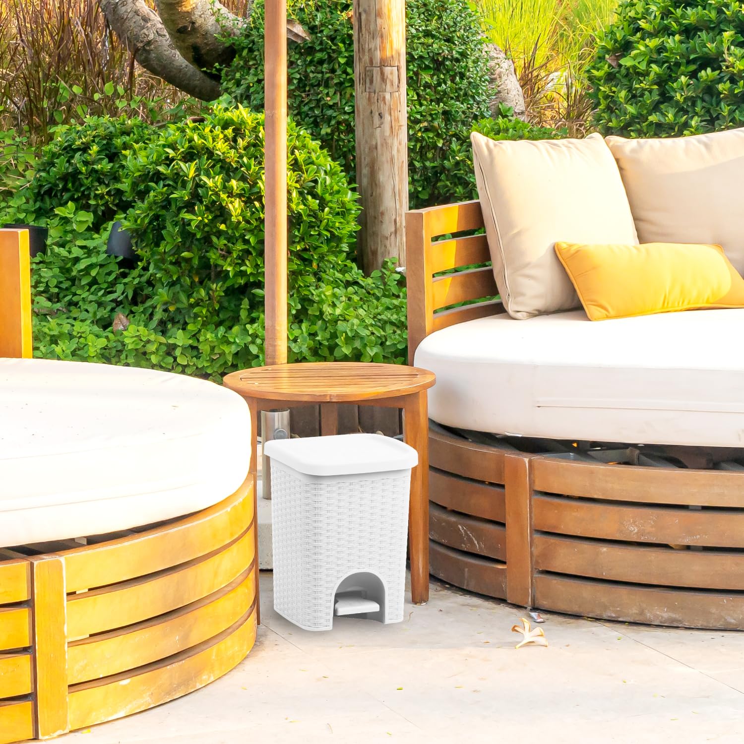 The Superio 6L Step Pedal Trash Can offers a stylish and practical waste disposal solution for various needs. Its convenient step pedal allows for hands-free operation, making it a hygienic choice for your home or office. The attractive wicker design in grey, white, or brown adds a subtle touch of elegance, seamlessly blending into any decor. Unlike traditional trash cans, the opening mechanism is cleverly concealed, providing a clean and uncluttered appearance. Crafted from durable plastic, this 6-liter trash can is built to last and is easy to maintain. Its compact size makes it ideal for desktops, countertops, bathrooms, offices, or even as a convenient solution for collecting pet waste during walks. The secure lid effectively contains odors, keeping your space fresh and tidy. Choose the Superio 6L Step Pedal Trash Can in your preferred neutral color for a durable, stylish, and hygienic waste management solution
