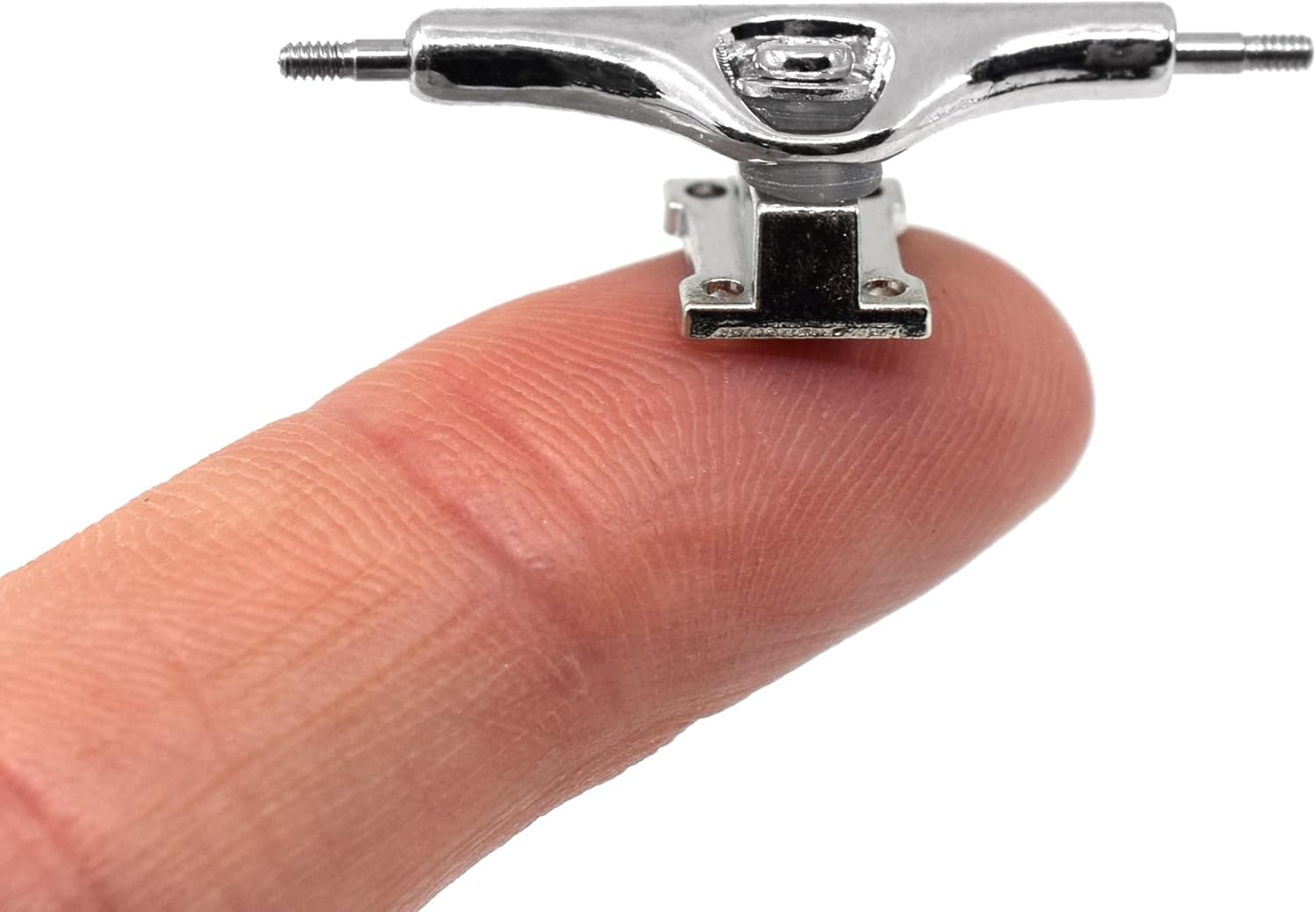 34mm Prodigy Swerve Trucks - Silver Chrome ColorwaySet of two professional fingerboard trucks. Teak Tuning Prodigy Swerve trucks feature a professional shape and appearance and feature upgraded Teak components. Each truck measures 34mm wide. Hanger has an updated contoured shape, and features a baseplate shape similar to Teak Original Prodigy Trucks. Swerve trucks are shorter and sit closer to riding surfaces. Prodigy Swerve trucks are compatible with all types of single and dual bearing fingerboard wheels, but work best with New Street, Slim Bowl and Shorty shaped wheels. Due to the shorter height of the Swerve trucks, larger wheels like Cruiser or Globe shape wheels may touch the deck during turns with looser bushings.Trucks are both assembled and tuned. All necessary hardware is included - 4 lock nuts with nylon inserts, 8 screws and a standard fingerboard tool. Trucks feature an inverse kingpin design to secure the tuning into place. O-ring tuning is preferred for these trucks. Bubble Bushings are compatible but will fit tightly due to the larger kingpin diameter.Made of premium stainless steel. CHOKING HAZARD: Small Parts. Not suitable for children under the age of 14.Teak Tuning products are designed and manufactured for teens and adults alike. Products contain small parts and are not safe to be put in your mouth due to the materials and choking hazards they represent. Please keep all Teak Tuning products out of reach of children under 14 years old.
