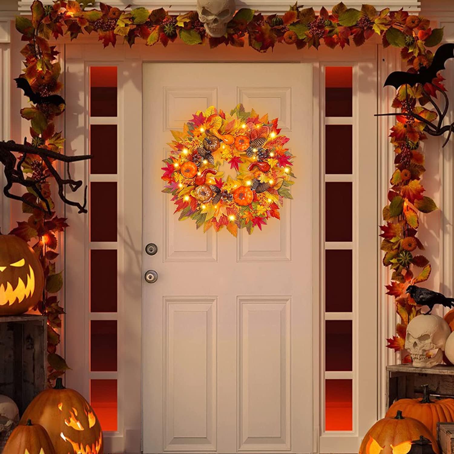 | Additional Features | 20 Inch Prelit Fall Thanksgiving Wreath, 30 Lights, Battery Operated, Rich Fall Thanksgiving Elements(Maples Leaves, Pumpkins, Pinecones, Acorns and Berries), Timer Function |