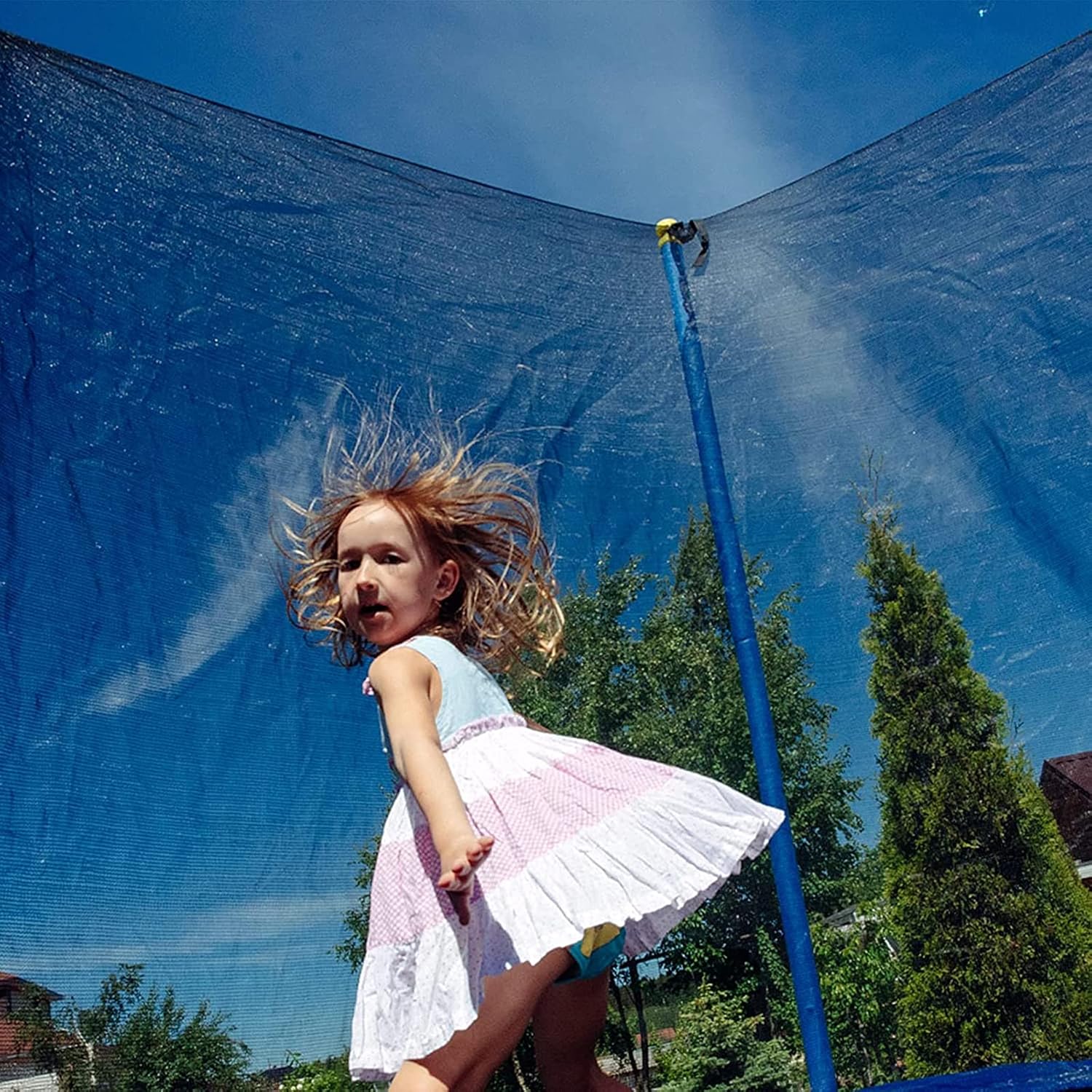 FeaturesMaterial: 110g/m2 PE.Compatible Enclosure Pole Type: Straight CurvedCompatible Enclosure Pole Count: 8 Poles/ 6 PolesCompatible Frame Sizes: 6ft 3 Arches or 6 Poles , 8ft 3 Arches or 6 Poles, 10ft 4 Arches or 8 Poles , 12ft 4 Arches or 8 Poles , 13ft 4 Arches or 8 Poles , 14ft 4 Arches or 8 PolesCompatible Frame Shape: RoundWith Adjustable Bolted StrapProduct Details:Fantastic quality replacement net makes your old trampoline brilliant again.This safety-net enclosure keeps your children safe.