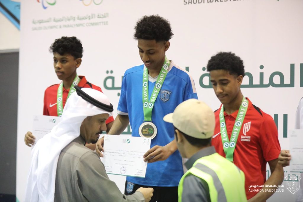 وتم تتويج اللاعبين من قبل رئيس مجلس الادارة المهندس إبراهيم المولد والرئيس التنفيذي لاتحاد المصارعة الأستاذ عبدالله المزيد ومدير الألعاب المختلفة بنادي النهضة الأستاذ سلطان العرادي.