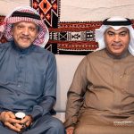 الفنان سمير الناصر والرئيس التنفيذي أ. عثمان بوجليع في زيارة لركن نادي النهضة في معرض سوق الثمانينات