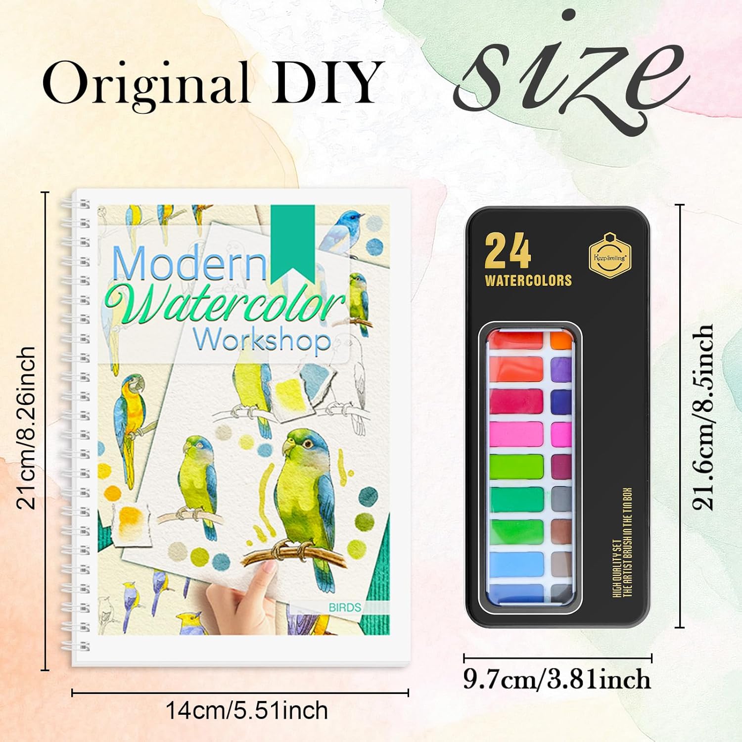 | Included Components | Watercolor Workbook (4), Watercolor Paint Set (24 colors), Watercolor Brush, Instruction Booklet |