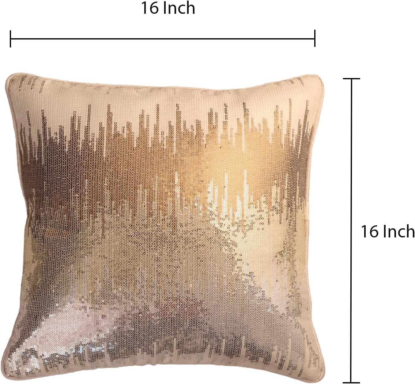 Abstract style decorative Gold and Silver Sequin Couch Cushion covers in a set of two. 16 inch by 16 inch square covers with a zipper closure. Beautiful Home decor accent pieces for your home and office seating for sofas, couches, armchairs, sectionals etc. The cushion covers are made of a polyster base with the front embroidered in a linear abstract pattern in silver and gold sequins. Timeless and classic these beautiful throw pillow cases are suitable for a glam luxe design style as well as for a festive holiday look at Thanksgiving, Christmas, Diwali etc. Use it create glam seating at weddings, engagement parties or Birthday Party for bride and groom backdrops and all special occasions.