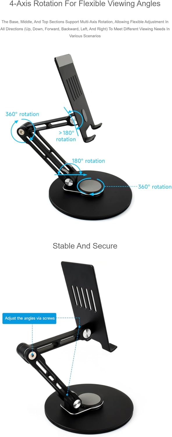 IntroductionThis Portable Monitor Adjustable Stand is a versatile tool for office, study, and entertainment scenarios. Designed for devices with 4~18.5 inches and weight ≤1.35kg, it is widely compatible with flat/curved monitors, tablets, Kindles, smartphones, and other mainstream devices. No additional adapters are needed, easily meeting the needs of multi-device use.Crafted from high-strength aluminum alloy and ABS material in one piece, the stand is stable yet lightweight and portable. It folds into a compact size, which can be easily put into a backpack, suitable for home office, dormitory study, business trip mobility, and other scenarios. The core highlight is its flexible adjustment function: it supports 360° free rotation, multi-angle tilting, and height adjustment, allowing quick switching between horizontal screen for office work, vertical screen for reading, or movie watching mode. It helps you find a comfortable eye-level viewing angle, effectively relieving neck and shoulder fatigue and improving usage comfort.The bottom is equipped with non-slip silicone pads, which not only enhance the stand's stability and prevent the device from slipping but also protect the desktop from scratches for safer use. No tools are required for installation and operation—ready to use right out of the box. The angle adjustment is smooth without lag. It is an ideal accessory for those pursuing a tidy, efficient, and comfortable desktop, making the multi-device usage experience more convenient and high-quality.Package ContentMini Monitor Stand (C) x1Allen spanner x1